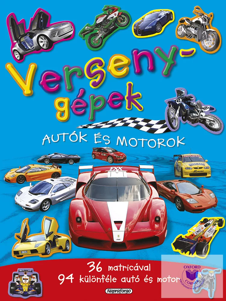 Lenyűgöző formák, szédítő sebesség, kifinomult motorok, Amióta megindultak az autók és a motorok az utakon, azóta lelkesednek értük kicsik és nagyok egyaránt. Matricásfüzetünkben megtalálhatod a legjellegzetesebb versenyautó-típusokat, motorfajtákat, valamint a jövő fejlesztéseit is. Lehet, hogy a sportos modellek tetszenek, lehet, hogy a klasszikus kialakítások, de a versenyzés izgalma és a sebességmánia elkísér a matricák ragasztgatása közben is.