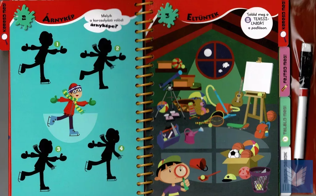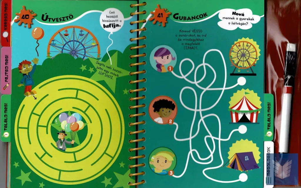 A mellékelt letörölhető toll felszabadítja a próbálkozásokat: nem baj, ha elsőre nem sikerül, a jelölések egyszerűen eltüntethetők, és jöhet az új megközelítés. Ez a formátum természetes keretet ad az önellenőrzésnek és az önbizalom építésének: a gyerekek megtapasztalják, hogy a tévedés a tanulási folyamat része, a javítás pedig kézzelfogható. A feladatoldalak időtartama rugalmas: van, amelyik egy-két perc alatt megoldható, és akadnak elmélyültebb koncentrációt igénylő rejtvények is – így a kötet jól illeszthető a család mindennapjaihoz.
